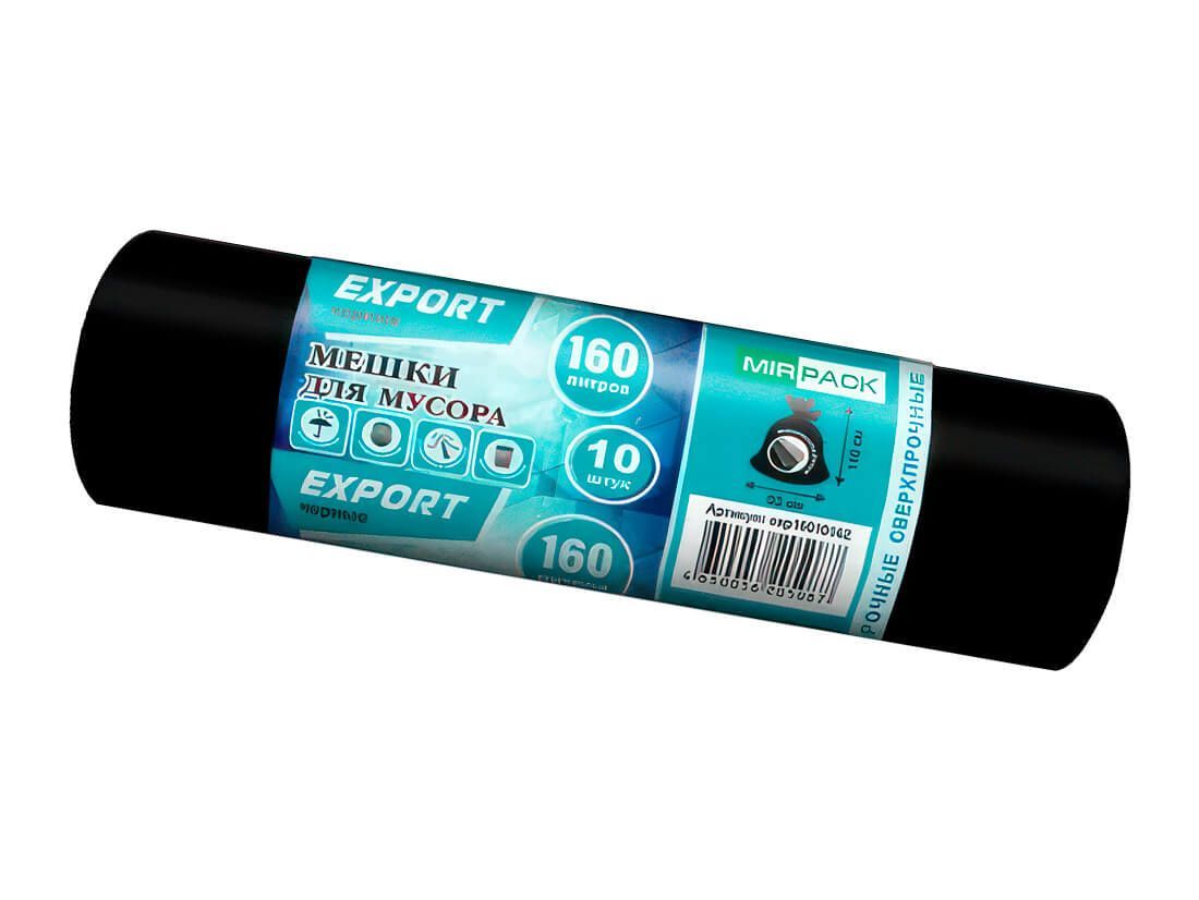 Мешки для мусора 160 л, ароматизированные, черные, в рулоне 10 шт., ПВД, 80 мкм, 1100х930 мм, EXPORT, exp16010142