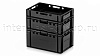 Ящик для мяса Е1 это первый по размеру в линейке мясных ящиков. Разработан специально для использования в мясной промышленности. Отлично штабелируется и собирается в единый сет со всеми ящиками серии. Изготовлен из первичного полиэтилена, и адаптирован для хранения в холодильных и морозильных камерах.