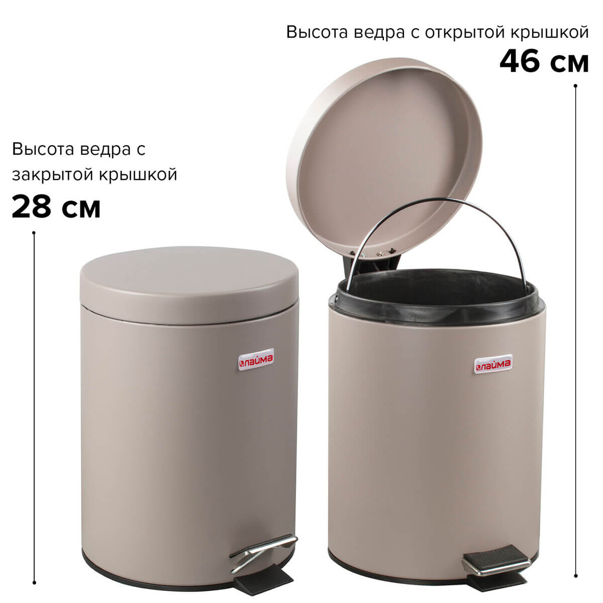 Ведро-контейнер для мусора (урна) с педалью LAIMA Classic, 5 л, серое, матовое, металл, со съемным внутренним ведром